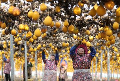 湖北钟祥:瓜蒌喜丰收 农户采收忙(客户端采稿)