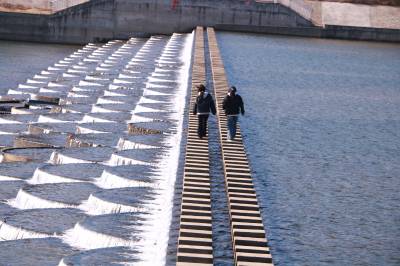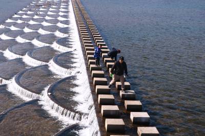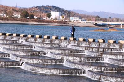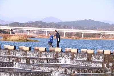2025年121月13日,周末暖阳高照,流水潺潺,大批游客被湖北省英山县杨柳湾镇东河鱼鳞坝美丽风光吸引,纷纷来到坝上欣赏两岸景色,聆听流泉响籁,惬意无比。