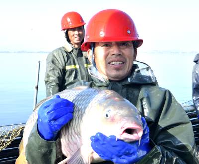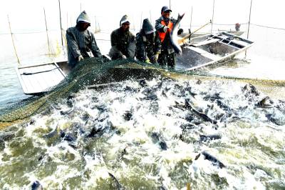 12月14日,武穴市农水集团武黄湖生态投资发展有限公司抢抓冬季捕捞黄金期开展武山湖生态渔业冬捕作业。该公司坚守“生态优先、绿色发展”理念,全面推行“人放天养”生态养殖模式,擦亮“武山湖”生态渔业品牌。培育的鳙鱼、鲢鱼、大白刁等生态鱼肉质鲜美,深受市场青睐,产品远销浙苏等地。此次冬捕自11月30日开网以来,日均起捕鲜鱼15万斤,预计总捕捞量约190万斤、产值1000余万元。当前,公司正铆足干劲冲刺全年285万斤产量、1800万元产值目标。视界网冯怡红 通讯员涂玉文摄