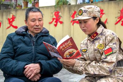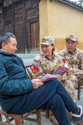 12月15日,在恩施市小渡船街道办事处何功伟村,征兵宣传小分队的队员为市民群众宣传相关征兵政策和优抚措施。 2026年春季征兵工作开启后,恩施市小渡船街道办事处组成征兵宣传小分队,进村入户,通过广播喇叭、展板挂图、知识手册,向群众和适龄青年广泛宣传兵役登记、国家的征兵政策和优抚措施,鼓励广大适龄青年踊跃报名参军,献身国防。