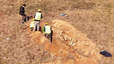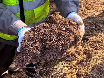 千里之堤毁于蚁穴。多年来,湖北省十堰市郧阳区水利和湖泊局每年对全区中小型水库进行两次全覆盖白蚁等害堤动物排查防治,立足于早、立足于防,综合施策、防微杜渐,确保水库安全。2025年12月16日,白蚁防治技术人员正在湖北省十堰市郧阳区城关镇马家沟水库外坝坡挖掘蚁巢。 视界网王涛摄