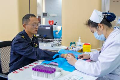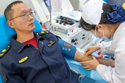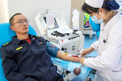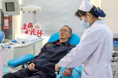 12月18日,恩施市城管志愿者王洋洋在血细胞采集室进行血小板捐献采集。这是他自2006年以来第52次无偿献血,总献血量达16000毫升,并多次荣获全国无偿献血奉献金奖。