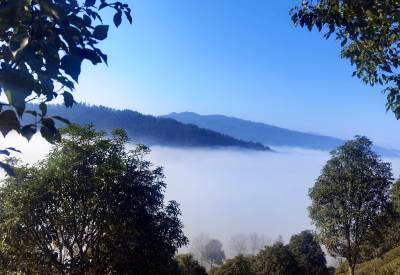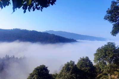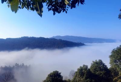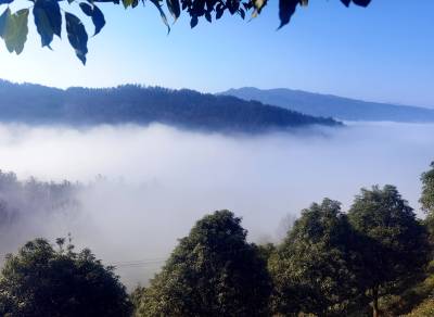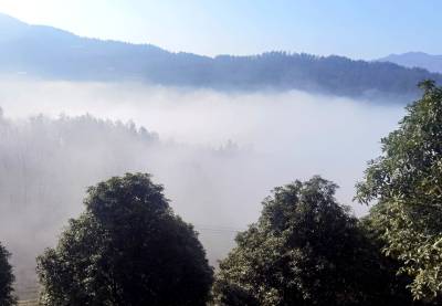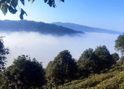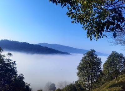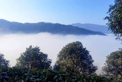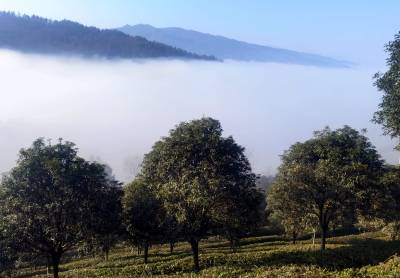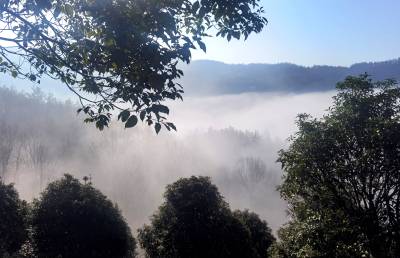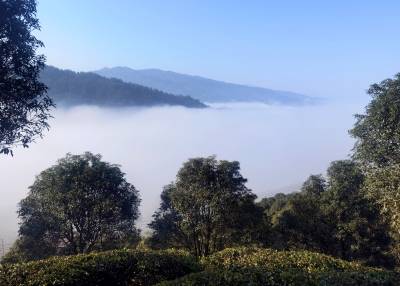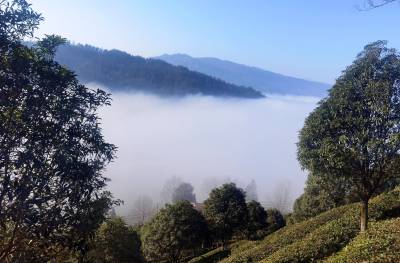 2025年12月17日,在湖北省襄阳市保康县黄堡镇黄龙沟村,云雾翩跹起舞,与茶园、群山、绿树和蓝天白云相映成趣,绘就了一幅气韵生动的水墨画卷,美不胜收。 孟冬时节,云雾或弥漫在茶园,或缭绕在山峦间,美如画卷。