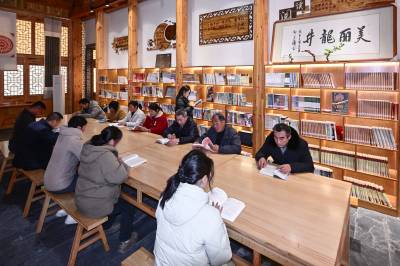 12月18日,在全国“十星级”文明农户创建评选发源地、竹山县麻家渡镇罗家坡村其乐融融的农家书屋里,村民在读书看报,增长才干。 全县共有245个标准化农家书屋,总藏书量达150万册,涵盖10,096种书籍、821种期刊及1066份报纸,定期更新的纸质书籍与数字化阅读服务并行,文化志愿服务人员现场指导阅读,常年开放的农家书屋,不但满足了广大农民朋友的求知需要,也提升了农民的文化素养与乡村文明程度。(石濡华 代雷)