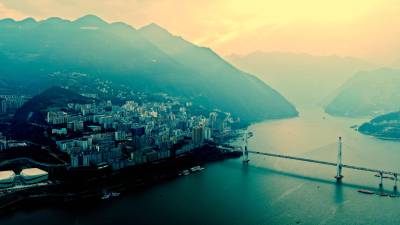 远处的群山,在晚霞的笼罩下,轮廓变得柔和而神秘,山间的云雾如梦如幻。依山而建的巴东山城,层层叠叠的建筑在晚霞的映照下,仿佛被镀上了一层金色的光辉。长江大桥在晚霞的衬托下,宛如一条银色的丝带,连接着江的两岸。桥上车辆穿梭,桥下船只在平静的江面上行驶,江水在晚霞的照耀下,波光粼粼,仿佛无数颗钻石在水面上闪烁。