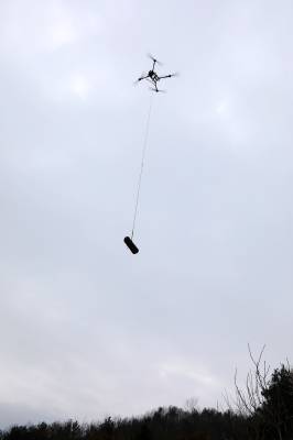 2025年12月21日,十堰市房县窑淮镇西沟村,一架中型多旋翼无人机携带绳索腾空而起,在操作人员精准地操控下,快速地将远处的山场杂木运送到乡村公路道旁,集中装运。