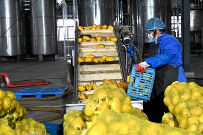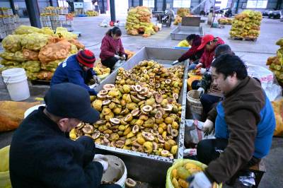 木瓜种植加工是湖北省十堰市郧阳区农业主导产业之一,形成了种植、加工、销售全产业链,成为当地农民增收的渠道,助力乡村振兴。2025年12月23日在湖北省十堰市郧阳区茶店镇一家木瓜产品加工企业车间内,工人正在加工木瓜准备酿制木瓜酒。视界网王涛摄
