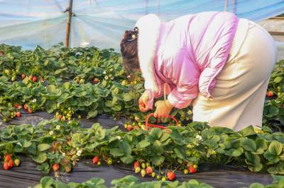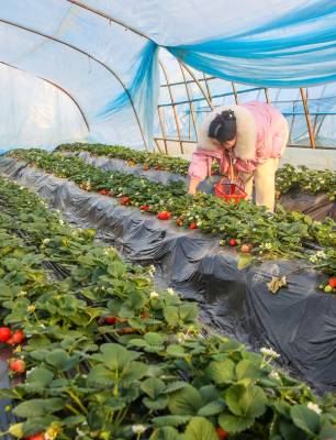 2025年12月24日,游客竹溪县城关镇后坝村“浪谷细雨草莓基地”体验现采现购新鲜草莓的乐趣。 寒冬时节,竹溪县各果农种植的草莓进入采摘期,草莓飘香吸引游客前来观光冬季特色产业,选购品尝自己亲手采摘的新鲜草莓。种植草莓的村民坐地销售乐增收。