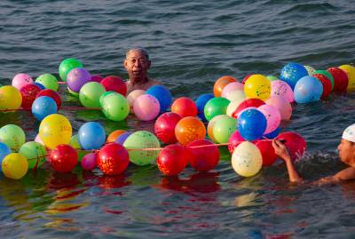 活动现场亮点纷呈:铿锵锣鼓中,《舞龙》舞出龙马精神;救生演练还原“溺水救援+心肺复苏”全流程,彰显冬泳人“护生命”的责任;浮球接力赛里,队员单手取球、划水妙趣横生;盛装下水秀创意泳装、玩花样表演,赚足喝彩;压轴的“抢红包气球”“追扑活鸭”更是将氛围推至高潮,岸上笑声与江中浪花共舞。