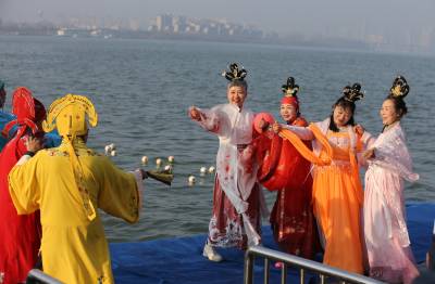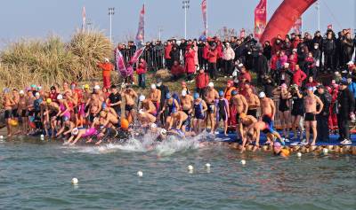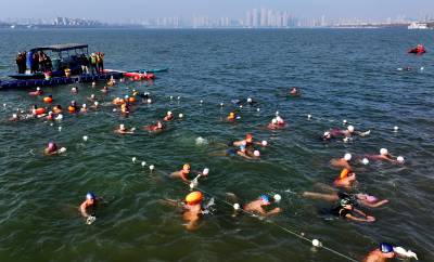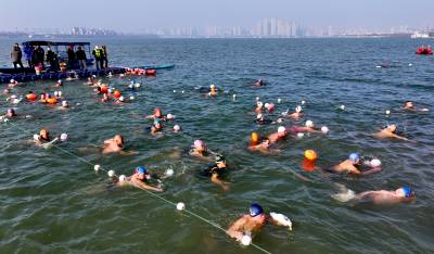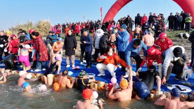 鱼梁洲畔冬泳热!500泳士逐浪汉江庆全国冬泳日
