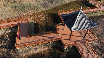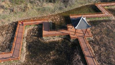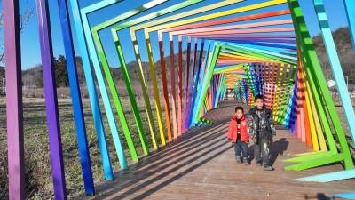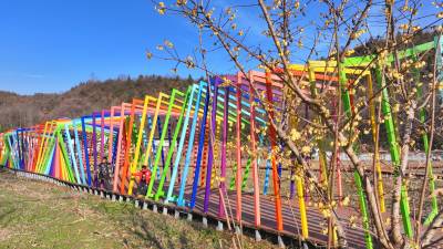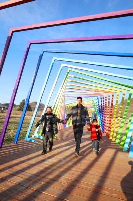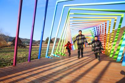 2025年12月27日,十堰市房县化龙堰镇上湾村农旅观光园,游客在七彩栈道游玩。