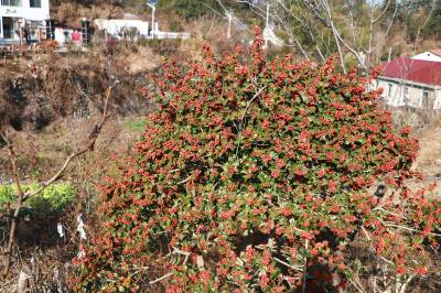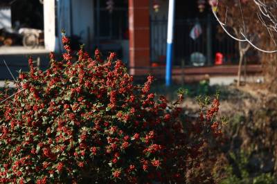 村民在房前屋后和田间地头菜地边种植枸骨,过年的时候,满树红果就成了“满堂红”了,枸骨红果“红火”的时间特别长,最长可以挂在枝头直到次年3月,可谓“超长待机”,扮靓和美乡村。同时,由于枸骨籽是中药材,来源于冬青科植物枸骨的干燥成熟果实,主要功效为滋补肝肾、益精明目,常用于改善肝肾不足引起的腰膝酸软、头晕目眩、视物模糊等症状,也成为村民创收的“宝贝”。