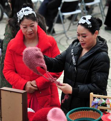 2025年12月26日,宜昌市夷陵区“庆元旦 迎新春”文化惠民开展“非遗过大年 文化进万家”展示活动,夷陵版画、糖画、皮影、剪纸、编织、面塑等非遗项目,吸引不少市民驻足观看非遗传承人的精湛技艺,体验传统手工艺的魅力。(视界网 张国荣 摄)