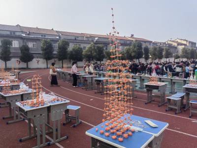 开幕式后,各项科技竞赛与展示活动紧锣密鼓地展开。“萝卜高塔”比赛中,一至六年级的同学们分工合作,用胡萝卜和牙签搭建起一座座骨架式高塔。他们小心翼翼地调整结构,力求在40分钟内搭建出更高、更稳定的作品。评委老师们则根据高度与稳定性两大标准进行公正评判。