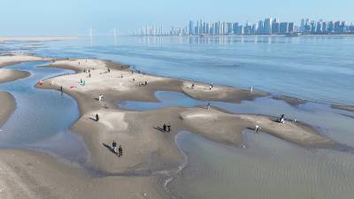 长江在冬日里收起奔涌的姿态,露出大片温柔的滩涂。市民们漫步在长江武汉二七段,或闲坐晒着难得的暖阳,或举起镜头捕捉碧波与芦苇共舞的诗意。此刻,天高水阔,时光放缓——这不是荒芜的河床,而是被季节赠予城市的另一片柔软客厅。