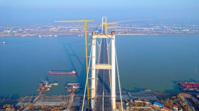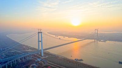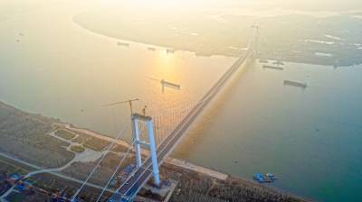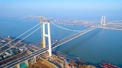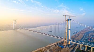 湖北:长江上最宽钢箱梁悬索桥武汉双柳长江大桥即将通车