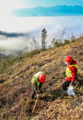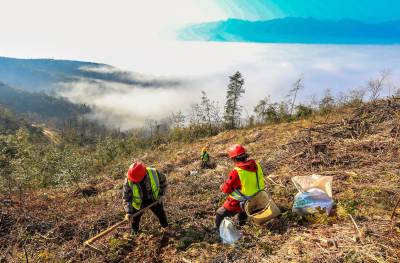 2025年12月28日,村民正在竹溪县城关镇温泉沟村,油茶产业山间补植缺株空白地段的油茶茶苗。 竹溪县城关镇今冬疏理补植2000亩现有油茶茶山(茶园)计划工作正在紧锣密鼓地落实之中。 规划“十五五”开局年新发展油茶经济产业4000亩。把该镇可利用的荒山变为既经济又景观的油茶产业,着力践行“绿水青山就金山银山”理念,为旅游业的发展厚植生态经济观光资源。为农民在家门口就业增收致富拓宽渠道,为乡村全面振兴奠定基础。