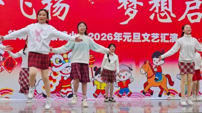辞旧迎新之际,谷城县盛康镇小学校园内洋溢着喜庆氛围,2026年元旦文艺汇演精彩上演。 舞台上,同学们活力四射。歌舞《Happy New Year》旋律轻快,瞬间点燃全场热情;《We Rock》节奏强劲,舞步利落,尽显少年朝气;原创节目《老同学显摆大会》创意十足,趣味演绎引得台下掌声阵阵。 整场汇演歌舞交融、欢声不断,既展现了学子们的艺术才华,更凝聚了校园温情。在欢声笑语中,师生们告别过往,满怀憧憬迈向崭新的2026年。(通讯员钱晋 张周昂)