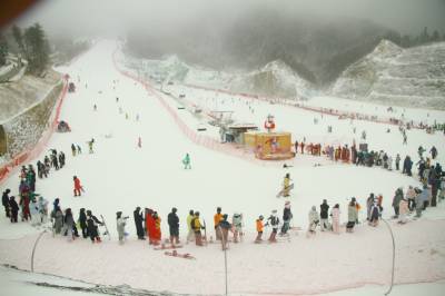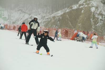 1月1日--2日,英山桃花冲国际滑雪场喜迎马年开门红,停车场内车辆络绎不绝,宽敞的接待大厅里,前来兑换雪具、购买门票的游客挤满了每一个服务窗口。场内,初级、中级、高级滑道人山人海。滑雪场还新增夜滑项目,吸引大量游客前来体验“追光”滑雪的独特魅力,尽情驰骋,现场极具视觉冲击力。