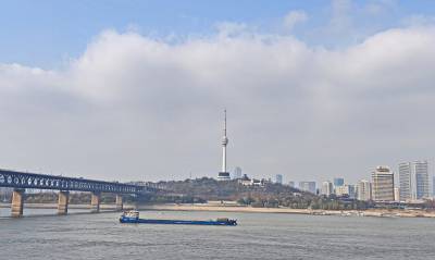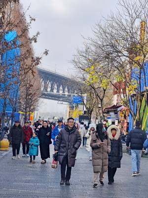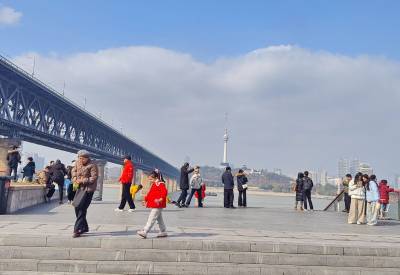 2026年1月2日,是新年元旦小长假的第二天。湖北省武汉市新年新气象。当天上午,市民和游人们站在武昌长江大桥头眺望汉阳龟山电视塔,放眼望去长江两岸蓝天白云飘,美不胜收。