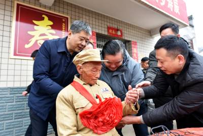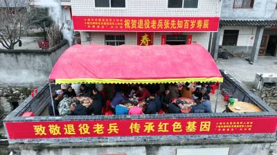 2026年1月3日,十堰市郧阳区谭家湾镇龙泉村4组退伍老兵张先知过百岁生日,省市区关爱退役军人协会领导冒雪进山为老人祝寿,为老寿星佩戴大红花,并送上慰问金。 百岁老兵张先知生于1927年1月2日,按照当地山区农村习俗男过虚提前,农历生日借助元旦假日提前举办。