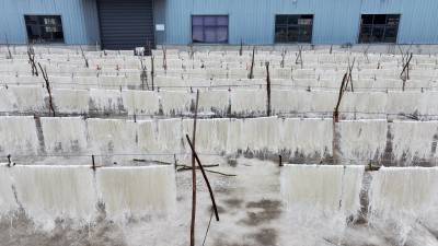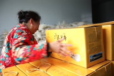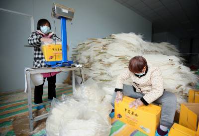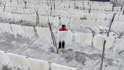 2026年1月3日,十堰市房县军店镇军马村,当地农民在晾晒、装箱纯手工红薯粉,供应广东、新疆等地。