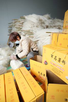 房县传承非遗纯手工红薯粉有300多年历史。近年来,房县充分利用酸性红土资源优势,实施“一镇一业、一村一品”的产业发展模式,种植高含量淀粉红薯,通过非遗纯手工工艺,加工红薯粉,经过包装,让如玉般的粉条,飘香国内大中城市市民的餐桌,推动了乡村特色产业振兴、农民增收致富。