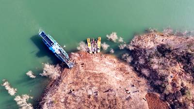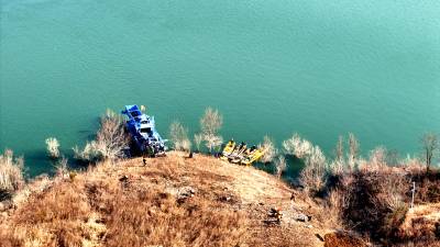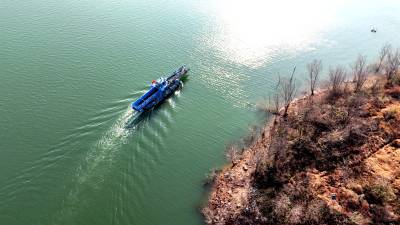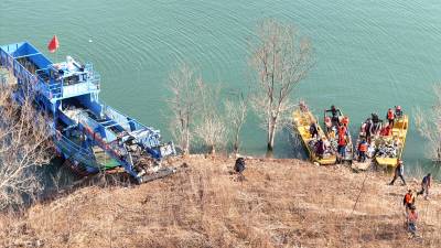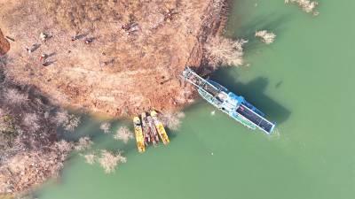 当日是小寒节气,汉江江面寒风凛冽。一大早,湖北省十堰市郧阳区汉江清漂志愿服务队队长、中国节水奖先进个人肖安山便带领10多名队员来到柳陂镇山跟前村江边洄水湾处清理江岸的枯枝烂叶和白色垃圾。2017年,郧阳区成立汉江清漂队,肖安山主动请缨,担任清漂队队长,一干就是8年。肖安山和队员们最初用捞网、铁锹、耙子等简易工具清理树枝、杂草等各类垃圾。随着郧阳区水利和湖泊局陆续配备3艘大型自动清漂船和10余条挂桨机动船,清漂效率显著提升,他的团队年出动船只超过800次。在他的感召与带领下,越来越多群众投身护水行动,汉江郧阳段江面长期保持洁净,水生态环境持续稳定向好。因守护水源贡献突出,肖安山2023年当选十堰市首届“最美守井人”,2025年12月获评首届中国节水奖先进个人。2026年1月5日,肖安山带领汉江清漂志愿服务队在湖北省十堰市郧阳区柳陂镇山跟前村汉江边清漂(无人机照片)。视界网王涛摄