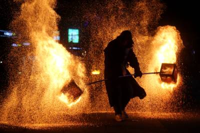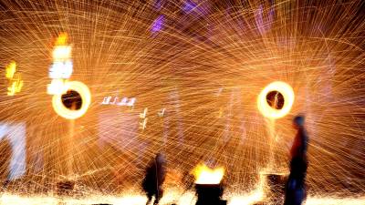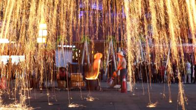 湖北郧阳:非遗火壶打铁花 流光溢彩落星霞(客户端采稿)