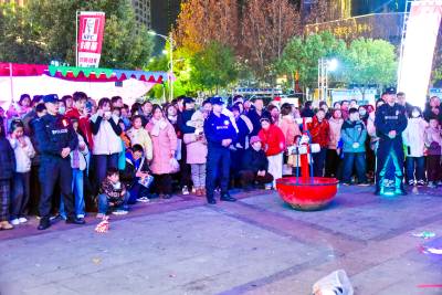 2026年1月1日至3日晚,十堰市郧阳区郧阳新天地文化广场铁花飞溅,烟花舞动,市民们观看具有1000多年历史的非物质文化遗产火树银花不夜天的打铁花表演,让许多市民发出阵阵赞叹声。而公安干警却在现场维护秩序,他们巡逻坚守在夜市上和游乐场上,确保各类活动平安进行。