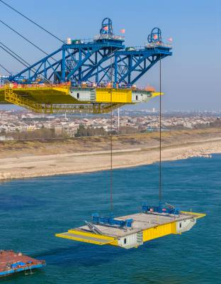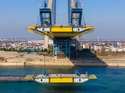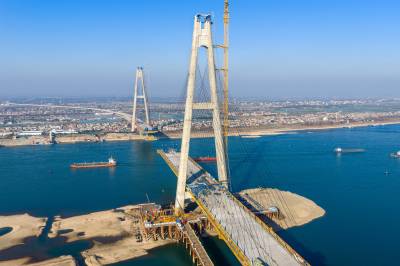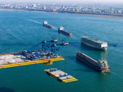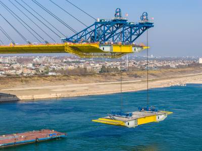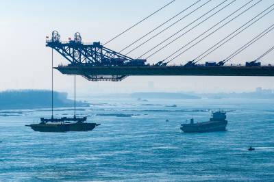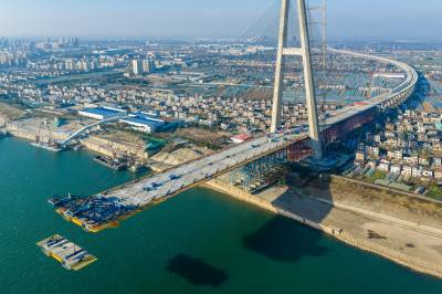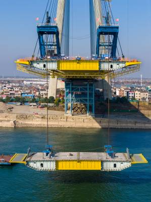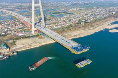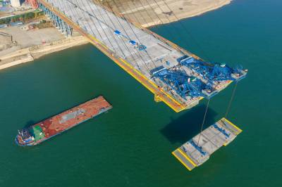 宜昌市枝江长江大桥钢箱梁吊装有序推进(客户端采稿)