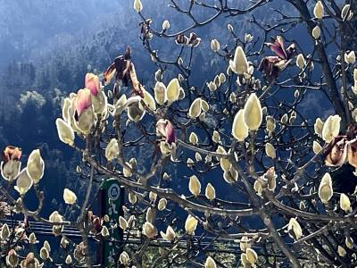 小寒惊现冬日春景 九华山玉兰逆势绽放
