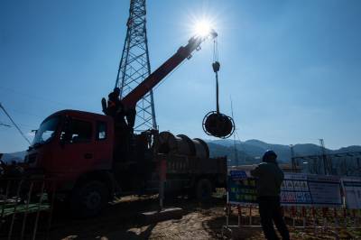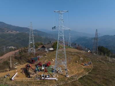 近日,位于湖北省秭归县西南部的两河口镇110千伏营盘变电站旁,新建的110千伏观营线正在加紧施工。