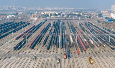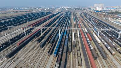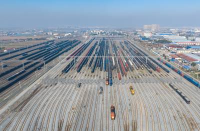 1月9日,大量货车在襄阳北编组站场整装待发。