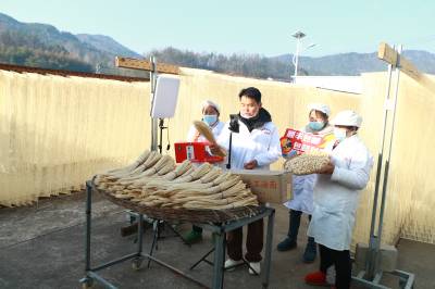 年关将近,手工油面走俏。英山油面手艺人、湖北玉皇尖农业负责人柯峰介绍油面的寓意是健康长寿、平平安安,吃油面对中老年人来说是回忆,对小孩子来说是一种文化传承。在这里,一直纯手工在做,没有使用机器设备,2025年销售手工油面近20万斤左右,电商网上销售约12万斤。除了油面,还做了其他英山特产,例如英山云雾茶、手工糍粑、腊肉、红灯笼辣椒腌菜、天麻、茯苓等等。也一直收购农产品,鲜茶、红灯笼辣椒,助农脱销、带动农民就业务工。