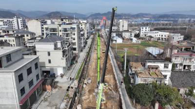 2026年1月10日,十堰市房县城市防洪防涝建设项目五标段施工现场一派繁忙,已完成防洪沟桩基础80余根。