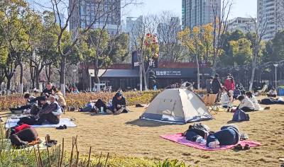 连日来,武汉市冬月三九天里暖阳普照。1月11日的周日暖阳,有众多市民携带户外旅游用品来到就近的江汉区菱角湖公园草坪地,露营晒太阳,尽惜享乐在冬月三九天里冬暖阳光。
