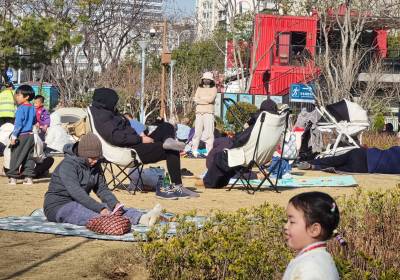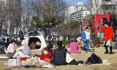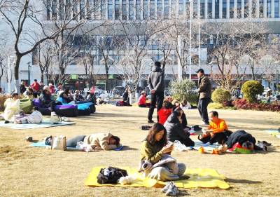 > 武汉:冬月三九天里暖阳 市民公园草坪晒太阳