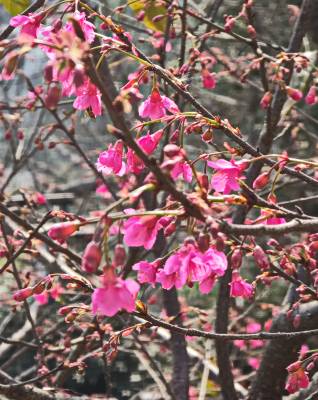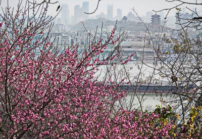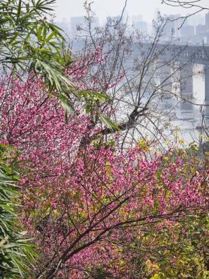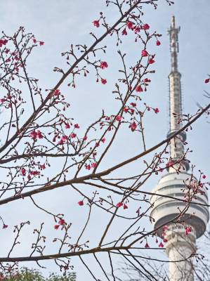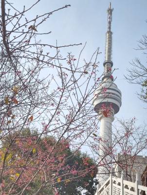 武汉:汉阳龟山公园樱花梅花同时提前绽放难得一见