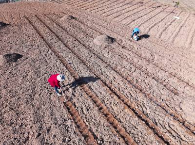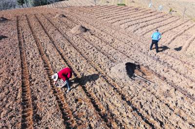 2026年1月10日,湖北省恩施土家族苗族自治州恩施市新塘乡下塘坝村李家台,村民抢抓晴好天气,在田间开展冬种作业。 初冬时节,当地农民抢抓农时,翻耕播种,为来年丰收打好基础。(视界网 张远明 摄)