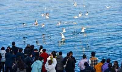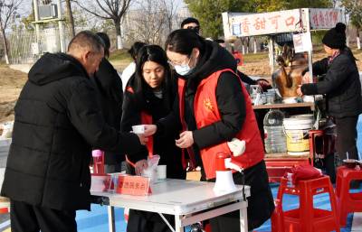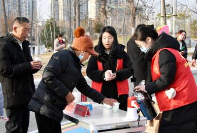 2026年1月15日,十堰市郧阳区体育场社区志愿者正在汉江北岸牛头岭码头为游客免费送茶水。郧阳区是南水北调中线水源区,进入冬季以来,西伯利亚红嘴海鸥来水源区越冬,迎来城区大量游客前来观看。为平安健康观看海鸥,相关部门志愿者来到现场全天为游客服务、有安全保障、有捡垃圾保洁环境、有送水、有维护交通安全秩序的,他们成为观看海鸥人群中的靓丽风景线。