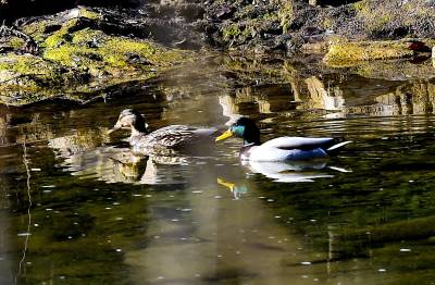 绿头鸭是雁形目鸭科鸭属鸟类,又名野鸭。体长约58厘米。雄鸟头绿色,有一白色领环,胸栗色,翼镜蓝绿色,尾上、下覆羽黑色,嘴黄绿色,脚橙红色;雌鸟嘴橙黄色,贯眼纹黑褐色,全体褐色,有暗褐色斑纹。