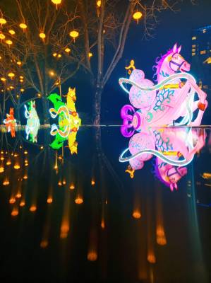 1月14日晚,以“万马奔腾贺新春·千灯璀璨耀江城”为主题的第十届湖北武汉园博园花灯会试亮灯。近70组主题彩灯,五光十色,色彩斑斓,流光溢彩,现场造型,榻榻如生,耀眼夺目,美不胜收。