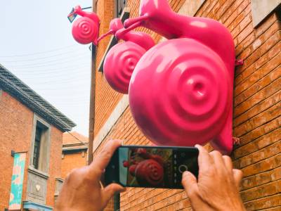 近日,武汉百年历史街区咸安坊迎来一批萌趣十足的新“居民”——数十只巨型粉色蜗牛装置艺术悄然“爬”上红砖洋楼的墙面与屋顶,为老汉口的烟火气注入新潮活力。