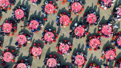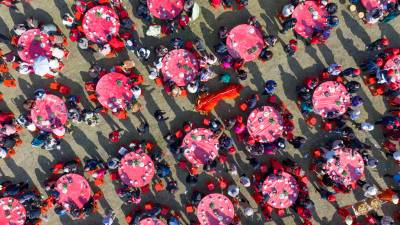 近日,武汉黄陂野村谷景区千人年猪宴火热开席,千余名游客齐聚山林间,共赴这场年味十足的民俗盛宴。