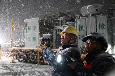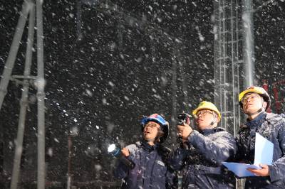 湖北孝感:风雪观冰哨 保障风电外送线路畅通(客户端采稿)
