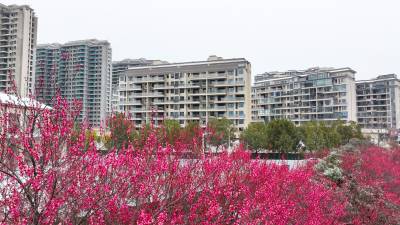 2026年1月20日,十堰市房县城关镇炳公村片区,保障房高低错落有致,绿花带梅花盛开,部分保障房开始陆续入住,温暖了冬天雪地。近年来,房县着力解决群众安居环境的急难愁盼问题,规划建设规格不同楼层楼房、户型、住房面积的高品质保障房,配套“入学、就医、健身、停车、购物”便利设施,全方位解决市民住房需求,让群众住得起、住得安、住得好。