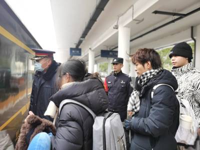 1月20日,迎来雨雪冰冻天气,襄阳铁路公安处荆门站派出所副所长耿鑫会同车站职工、列车员在站台维持秩序,确保旅客安全出行。