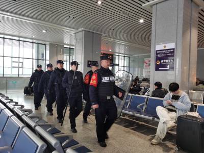 1月20日,襄阳铁路公安处荆门站派出所执勤民警会同驻站特警巡查进出站口、候车室、广场等重点部位,维持站区治安秩序。