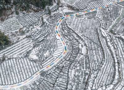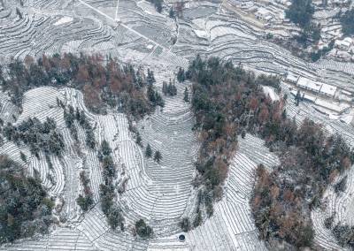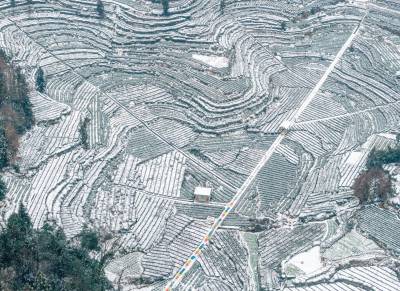 湖北巴东:雪落梯田水墨间 绘就冬日乡村画卷